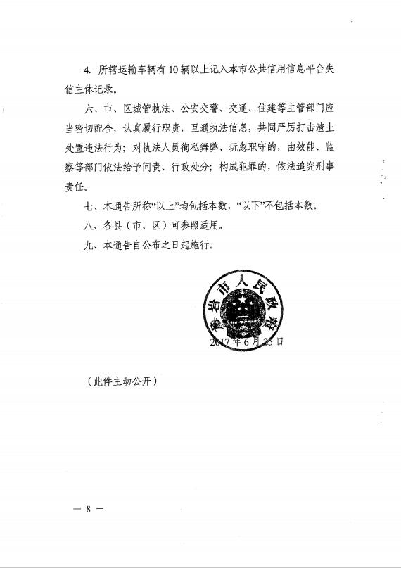 龍巖市人民政府關(guān)于嚴(yán)厲打擊渣土處置違法行為的通告(通告【2017】3號(hào))