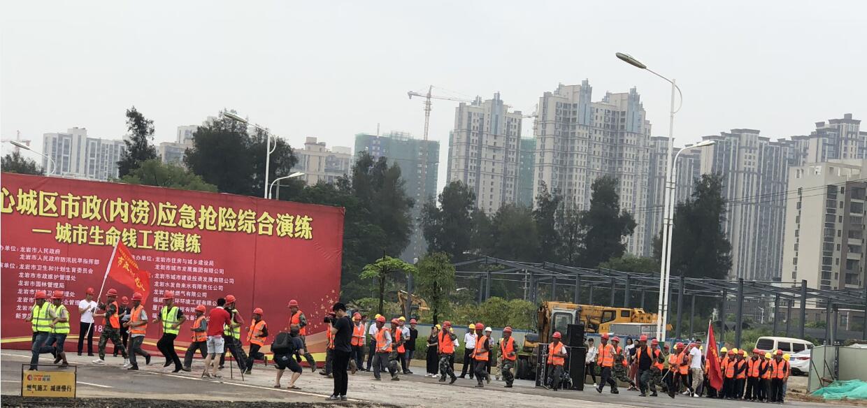 龍巖大道與工業(yè)路交叉口立交工程開展市政(內(nèi)澇)應(yīng)急搶險綜合演練
