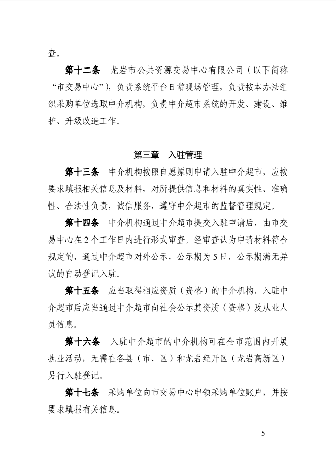 龍巖市人民政府辦公室關(guān)于印發(fā)龍巖市投資項目網(wǎng)上中介超市管理暫行辦法的通知(龍政辦[2019]111號)